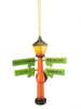 French Quarter lamp post ornament displays 4 street signs with bouncy spring attachments -- a fun, unique, moving ornament/magnet. Signs read: French Quarter, Royal Street, New Orleans, Bourbon Street. 3 in tall.