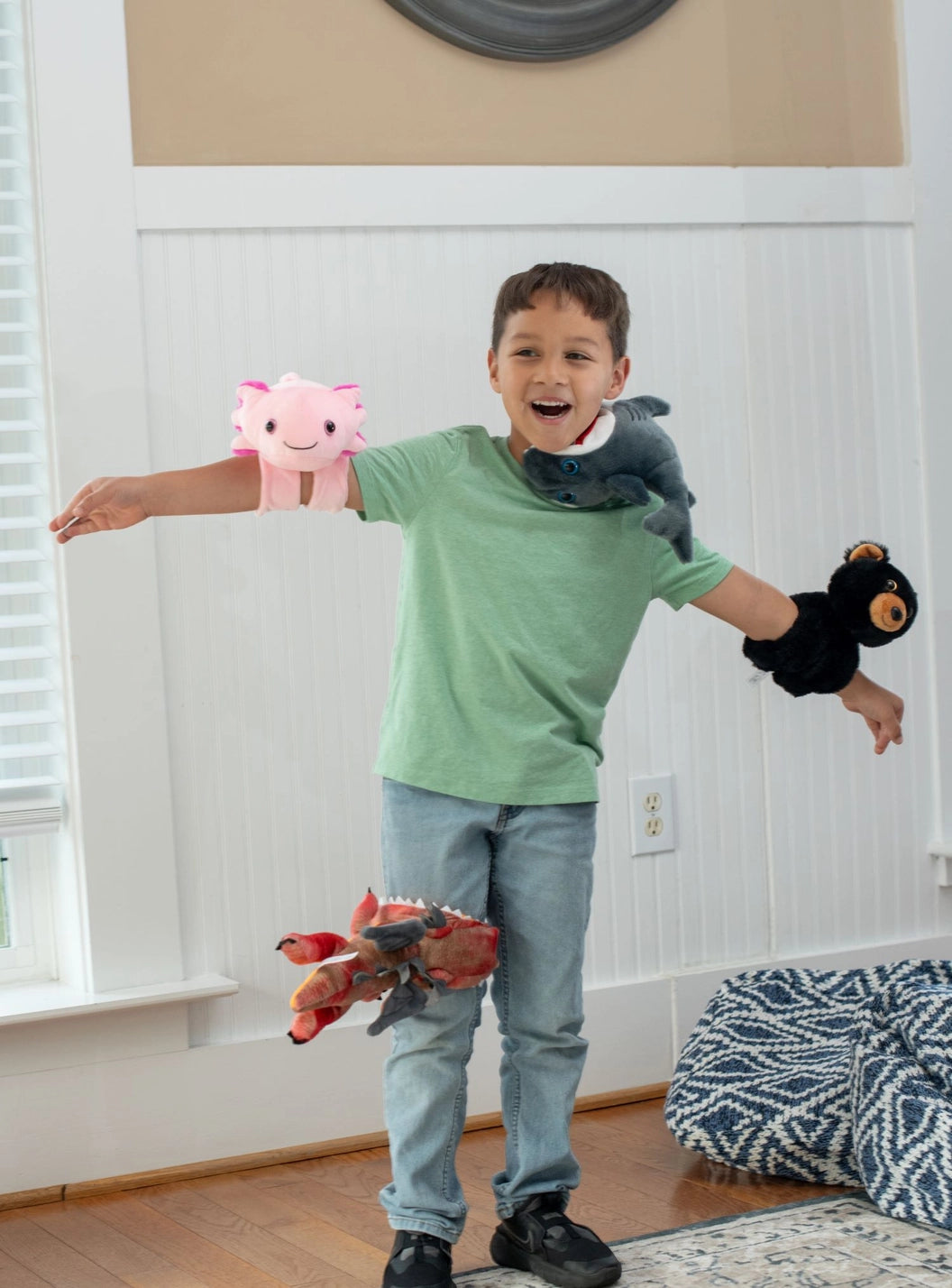 Discover the bigger, softer, and cuter Slapstix shark bracelet. At 10" tall, it's larger than most plush animals and comes with two slap bracelets that add a playful touch to your style. Perfect for on-the-go adventures, parties, and everyday smiles. Wear it, hug it, love it - SlapStix bring the fun everywhere!